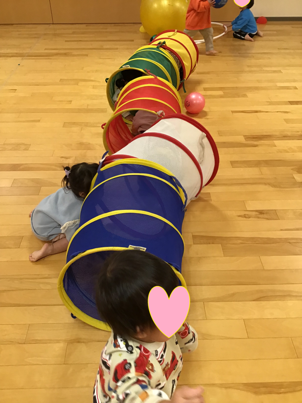 「つなげて~!」という子どもからのリクエストに応え長いトンネルを作りました!(^^)!次々とトンネルの中へ!! 出てきたよ~!! 切り離したトンネル...