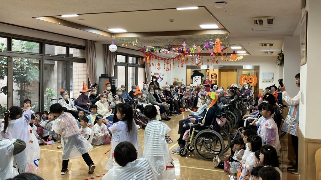 みちのこ保育園の園児さん自作のハロウィン仮装衣装を着て、施設に遊びに来てくれました!! 入居者さまも仮装?(笑)して。 皆さま可愛らしいお姿ですね ...