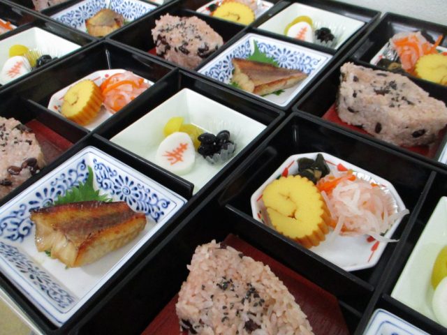 お正月といえば、やっぱりおせち! 本日の昼食は、重箱に詰めてちょっと華やかにお届けしました。 お赤飯も縁起の良い末広の型で抜いてみました。 こちらは...