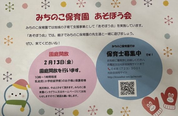 最近のブログ 2026.1.22 みちのこ保育園 あそぼう会 2025.12.23 餅つき集会 みちみちデー 2025.11.18 就活生対象!園見学開催 2025.11.13 みちのこ保育園 あそぼう会クリスマス🎄 2025.11.13 年長 小学校見学 カテゴリー カテゴリーなし アーカイブ 月を選択 2026年1月 (1) 2025年12月 (1) 2025年11月 (4) 2025年10月 (2) 2025年9月 (1) 2025年7月 (1) 2025年6月 (3) 2025年4月 (2) 2025年1月 (1) 2024年12月 (2) 2024年11月 (7) 2024年9月 (2) 2024年8月 (2) 2024年7月 (4) 2024年6月 (2) 2024年5月 (3) 2024年4月 (1) 2024年3月 (4) 2024年2月 (1) 2023年12月 (2) 2023年11月 (5) 2023年10月 (1) 2023年9月 (2) 2023年8月 (2) 2023年7月 (4) 2023年6月 (2) 2023年5月 (3) 2023年4月 (6) 2023年3月 (11) 2023年2月 (15) 2023年1月 (8) 2022年12月 (8) 2022年11月 (4) 2022年10月 (8) 2022年9月 (3) 2022年8月 (2) 2022年7月 (2) 2022年6月 (3) 2022年5月 (4) 2022年4月 (3) 2022年3月 (5) 2022年2月 (2) 2022年1月 (3) 2021年12月 (5) 2021年11月 (4) 2021年10月 (8) 2021年9月 (9) 2021年8月 (7) 2021年7月 (7) 2021年6月 (9) 2021年5月 (9) 2021年4月 (11) 2021年3月 (9) 2021年2月 (12) 2021年1月 (9) 2020年12月 (8) 2020年11月 (4) 2020年10月 (8) 2020年9月 (2) 2020年7月 (9) 2020年6月 (11) 2020年5月 (5) 2020年4月 (8) 2020年3月 (10) 2020年2月 (10) 2020年1月 (6) 2019年12月 (10) 2019年11月 (5) 2019年10月 (6)