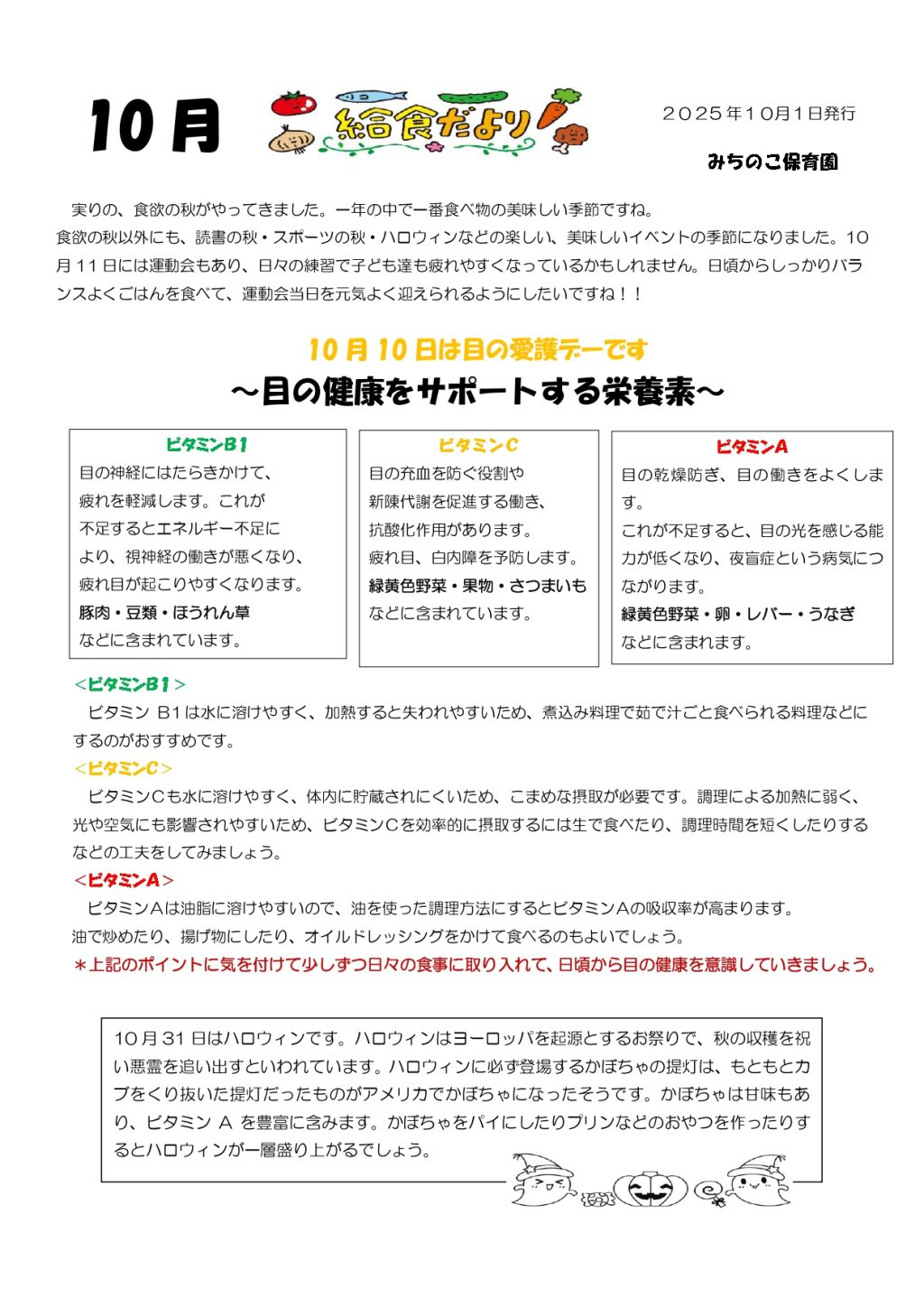 最近のおたより 2025.10.1 10月 園だより 2025.10.1 10月 献立 2025.10.1 10月 保健だより 2025.10.1 10月 給食だより 2025.9.1 9月 給食だより