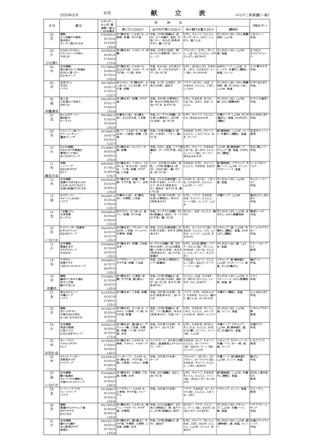 3月 献立