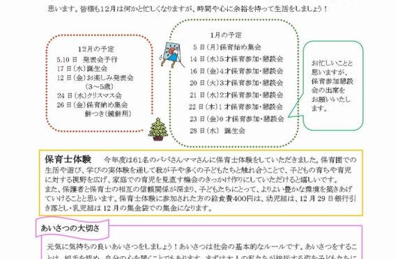 最近のおたより 2025.12.1 12月 園だより 2025.12.1 12月 給食だより 2025.11.28 12月 献立表 2025.11.28 12月 離乳食献立表 2025.11.1 11月 園だより
