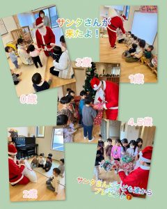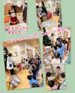 2026.1.9ブログ クリスマスの様子★ 保育園にもサンタさん🎅がプレゼントを持ってやって来てくれました!! (先生達にもプレゼントがありました♡) プレゼントを開封している時の子ども達の笑顔😊 空に向かって「サンタさんありがとー!!」とお礼を伝えました。 前の記事 次の記事