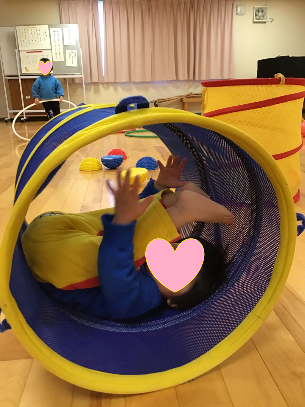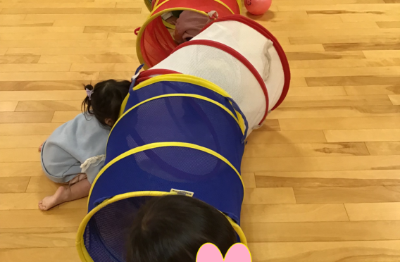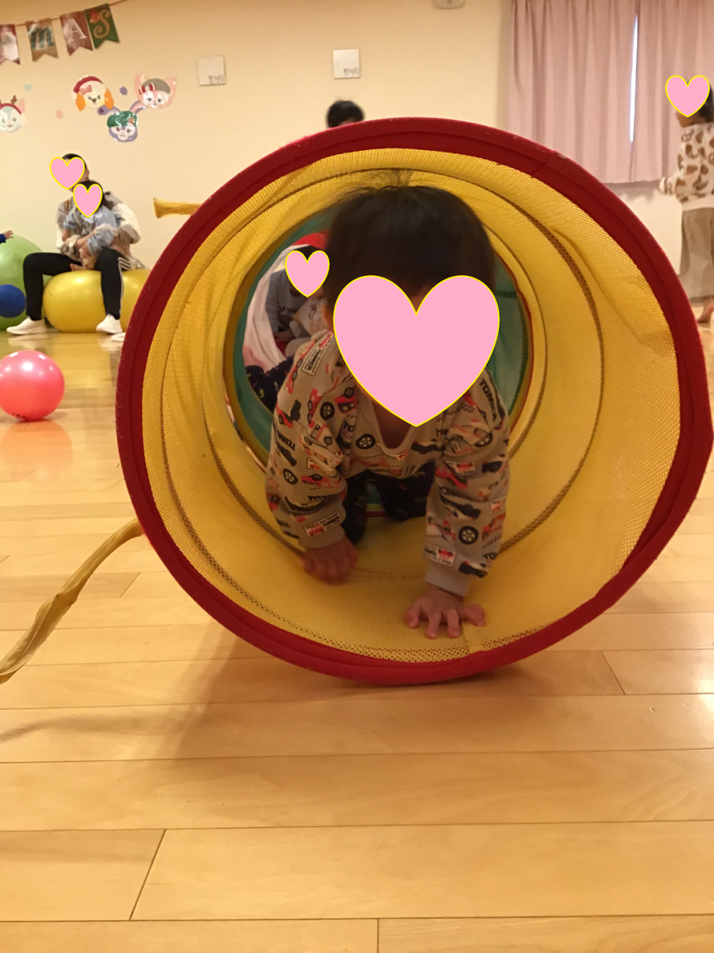 「つなげて~!」という子どもからのリクエストに応え長いトンネルを作りました!(^^)!次々とトンネルの中へ!!