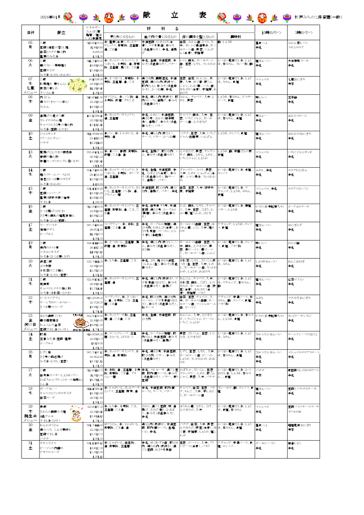 1月 献立表