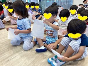 お月見クイズを行い、お花紙でお団子作りをしました!